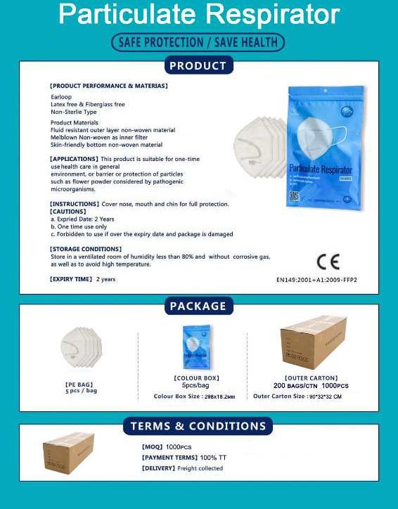 MASQUE RESPIRATOIRE FFP2-KN95 Ce EN149: 2001 + A1: 2009-FFP2